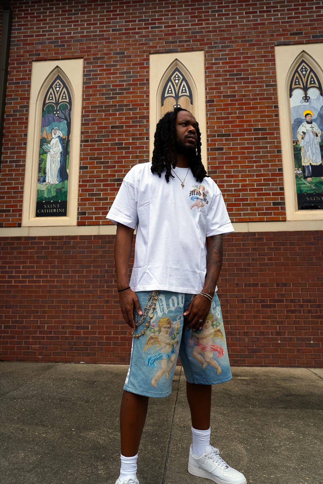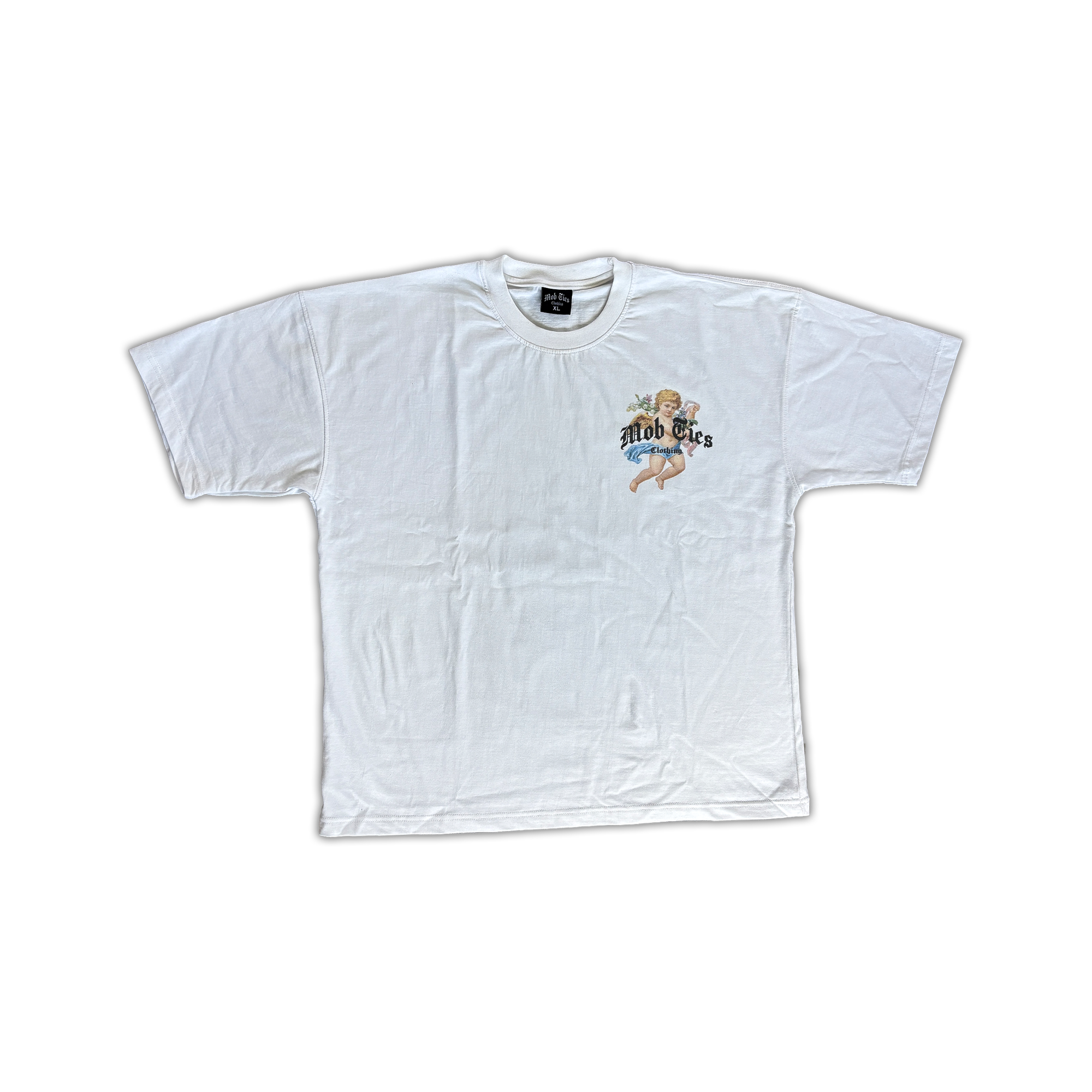 Romantic meets raw in the Loverboy Tees by Mob Ties Clothing. Featuring vintage cherub graphics set against bold gothic lettering, these tees bring a fresh contrast of softness and strength to your everyday fit. Available in black and white, each shirt carries the Mob Ties signature Arch Logo — a blend of loyalty, art, and attitude.